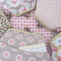 In all meinen Produkten steckt viel liebevolle und genaue Handarbeit. Ein Necessaire mit Aussenfach besteht aus 13 Teilen. Die Aussenstoffe sind mit Bügelflies verstärkt, ebenfalls ist ein Volumenflies eingearbeitet. Innen ist jeweils ein beschichteter Baumwollstoff verarbeitet.